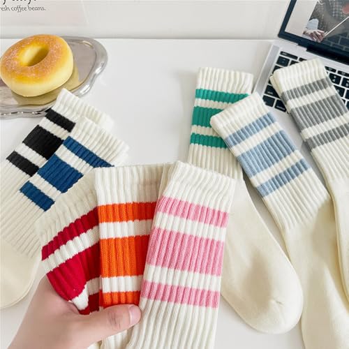 Retro Striped Crew Socks for Women Casual Soft Cozy Breathable Slouchy Athletic Calf Tube Socks 7