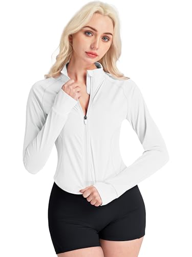 • Lightweight Athletic Jacket: Sun protection running jacket designed with waist-crop length, flattering curved hem and streamlined clipping, this regular fit cropped sun shirts is perfect for your body curves with extra room