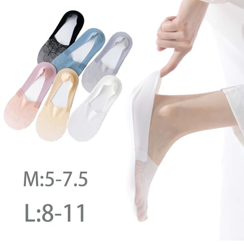 6 Pack Thin Lace No Show Socks For Women, Invisible Low Cut Women’s Liner Sock Size 5-8,9-11 5