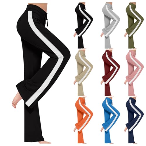HOT ! Yoga Pants Women Side Striped High Waist Wide Leg Pants Athletic Casual Drawstring Pant Comfy Stretch Trousers