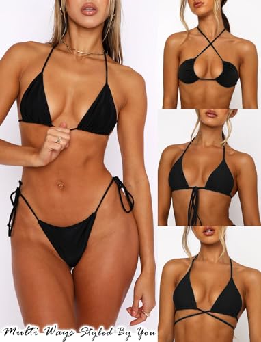 • Halter Neck Triangle Bikini Top Style: Featuring with thin elastic straps, self-tie open back and removable pads; The triangles can move around and be placed as comfortably as needed; Breeze into summer in triangle bikini tops