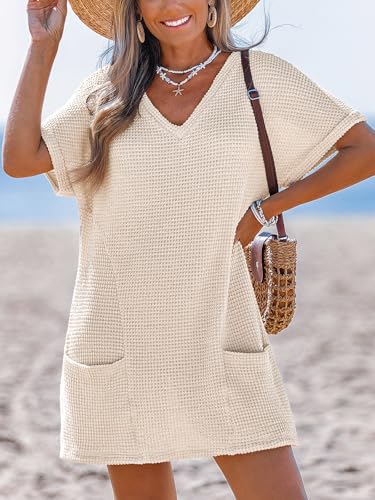 • Features: Discover 2025 v neck summer cover ups for women featuring loose beach vacation essentials, waffle knit cover up for women, v neck cover up dress. You can wear it with swimsuit or pair it with sandals and for a complete summer look