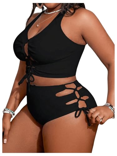 SOLY HUX Women's Plus Size Bikini Set Sexy Swimsuit Lace Up Tummy Control 2 Piece Bathing Suit 2