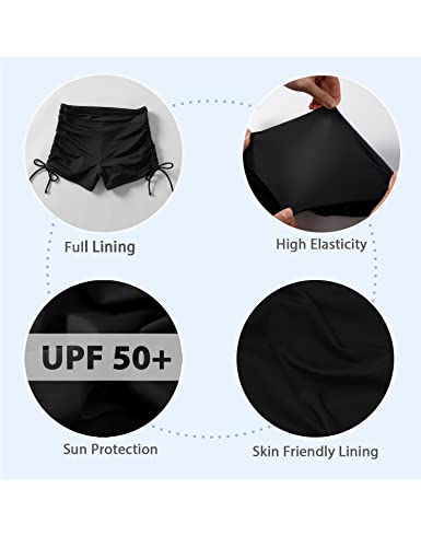 Bonneuitbebe Women's Swim Shorts High Waist Swimsuit Bottoms Adjustable Side Tie Bathing Suit Boyshorts Bikini Board Shorts 2