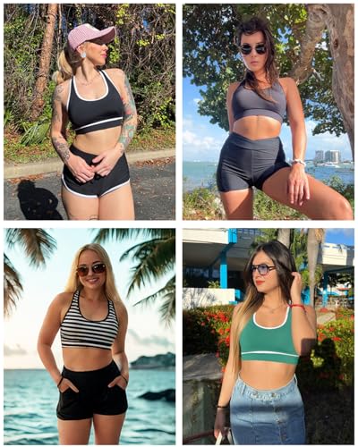 Holipick Women's Sports Bra Bikini Tops Racerback Swim Top Scoop Neck Bathing Suits Top Modest Padded Crop Tops Swimsuit Only 5