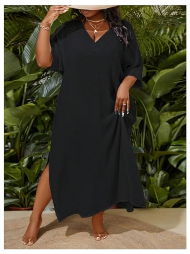 • Features: plus size cover up beach dress with v neck half sleeve, split thigh