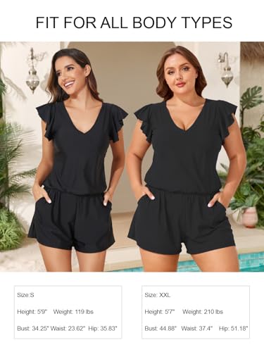 • [Swim Boyleg Jumpsuit] This romper is stylish and practical. It has side pockets for phones and small items and built-in briefs for more coverage and peace of mind during water activities