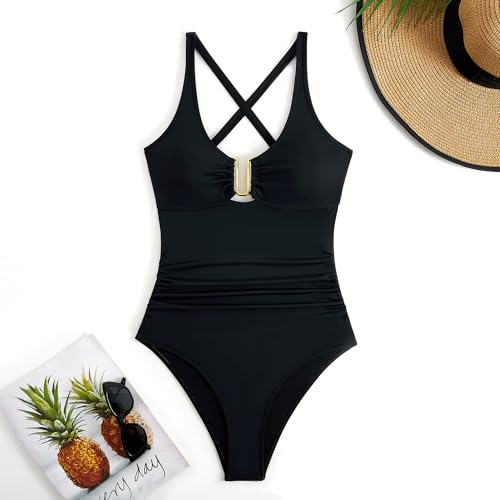 • [Features]The women’s one-piece swimsuit skillfully combines functionality with style, featuring a stylish U-shaped metal accent at the front for added elegance. The elegant wrap-around long skirt provides coverage while accentuating your silhouette, designed with a full-body retro look.