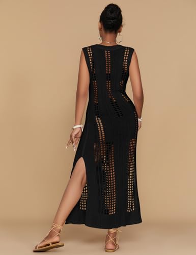 • 【Design】This knit beach cover up features a sleeveless, sexy cutout design and a side opening at the hem for easy movement, making it suitable for a variety of beach or pool occasions