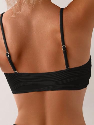 Fanuerg Women's Ribbed Bikini Sets U Wire Adjustable Spaghetti Straps Swimsuit Textured Ruched Two Piece Bathing Suit 4