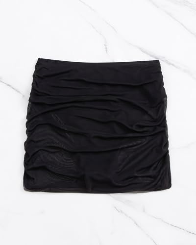 SherryDC Women's Ruched Mesh Bikini Swimsuit Bottoms High Waisted Sheer Short Swim Skirt 4