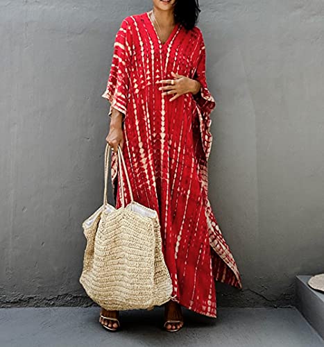 HOT ! RanRui Women's Plus Size Caftans tie dye Vneck Kaftan Dresses Loose Soft Kaftan Loungewear