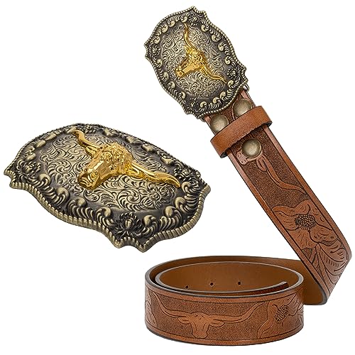 Western Bull Cowboy Belt for Men - Women Vintage Embossed PU Leather Cowgirl Belt Rodeo Country Farm Wedding Costume Jeans 1