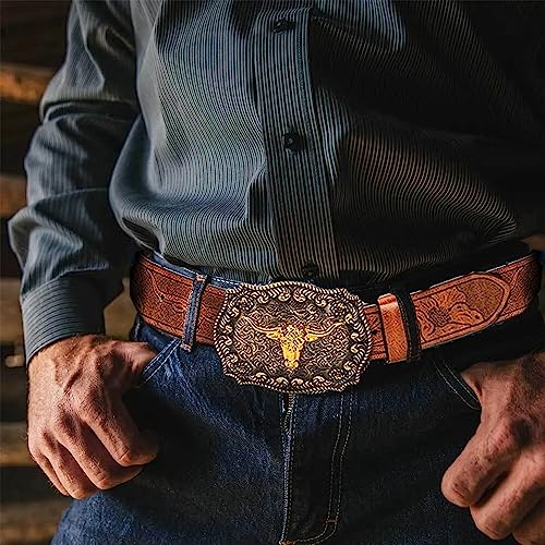 • This belt features a golden Bull-head buckle with 3D western pattern carving, that is skin-friendly and durable. cowboy belt making you stand out in the crowd and highlighting your western cowboy charm.