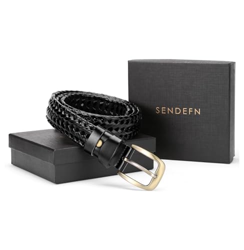 HOT ! Leather Braided Belts for Men, 1 3/8" Casual Woven Leather Belt for Jeans, Golf, Dress Pants with Gift Box