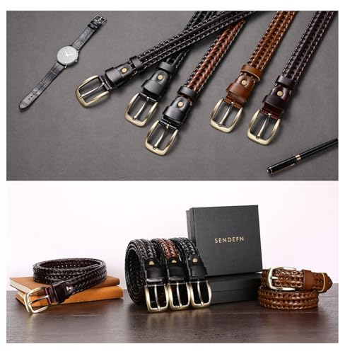 Leather Braided Belts for Men, 1 3/8" Casual Woven Leather Belt for Jeans, Golf, Dress Pants with Gift Box 5