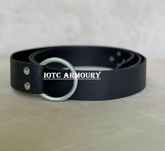 • Medieval Ring belt: Made of quality leather and features a solid steel ring. This belt is made with care and craftsmanship, with every belt handmade to the highest standard. The rivets are made of steel. This belt can be used with leather pouches and sword holders. Medieval knight ring belt bring you back to the middle ages. You will be the stars in LARP and Ren Faire. This is a perfect for medieval costume and most used in halloween festivals and parties.