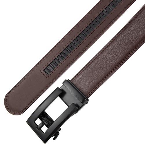 • EASY TO USE BELT FOR MEN:Just slide the dress belt into the sliding buckle and pull leather belt through,the ratchet buckle auto-locks.To release the ratchet belts,gently push the release lever on the side of the automatic buckle and lock will snap. Simple,smooth and sleek
