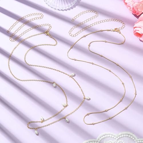 LiQunSweet 2 Pcs Imitation Pearl Tassel Chain Belts Waist Belly Body Chain Belt Body Accessories Jewelry for Women Dresses Jeans Decoration 4