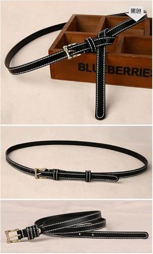Belts for women, Waist Belt Women's Waist Belts Pure Cowhide Belts Alloy Buckle Dress Thin Belt Adjustable Fashion Simple Belt(Black,115 cm) 7