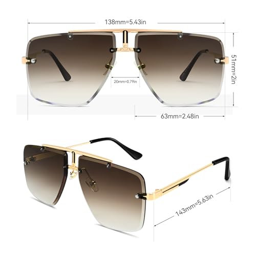 Rimless Oversized Square Sunglasses for Men Trendy Fashion Big Shades Tinted Lens Gold Metal Frameless Glasses UV400 5