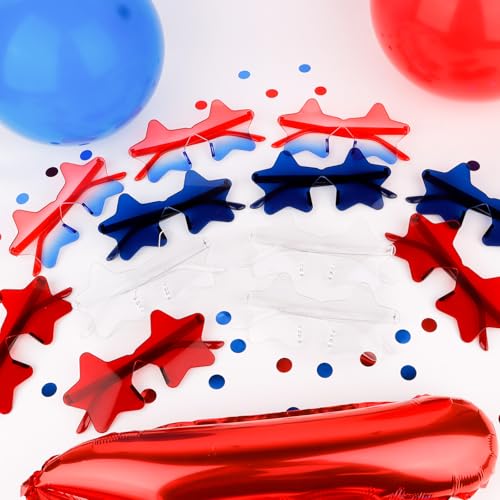 • 12 Pairs Patriotic Star Sunglasses: Celebrate in style with this 12-pack of red, white, and blue star-shaped sunglasses! Ideal for Independence Day parties, family gatherings, and group celebrations. With plenty to go around, you can easily share them with friends and loved ones to spread the patriotic cheer.