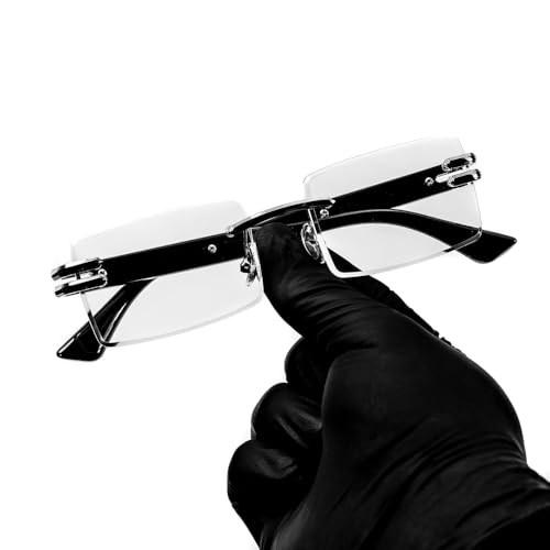 • MODERN RETRO RIMLESS RECTANGLE: Frameless rectangle sunglasses with a stylish diamond cutting design, Silver metal frame temple give these glasses stylish and retro style shades, these vintage rectangle sunglasses can block 100% harmful UVA, UVB rays, protect your eyes against long term UV damage. High-Definition Lens Gives you a Natural & Clear Vision, and keeping your eyes healthy.