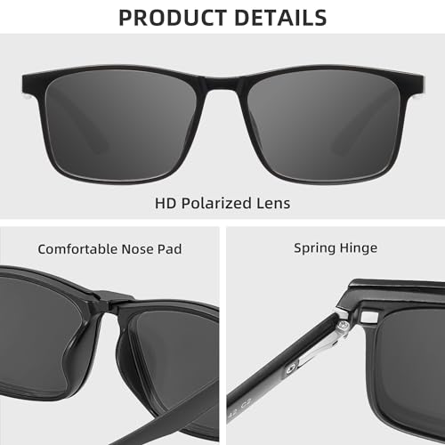 JIM HALO Magnetic 5Pcs Polarized Clip-on Sunglasses Plastic Square Frame for Night Driving 6