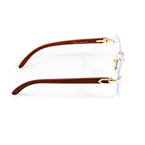 Street Knitted Men's Rimless Woodgrain Vintage Hip Hop Gold Frame Gem Cut Clear Lens Glasses 1