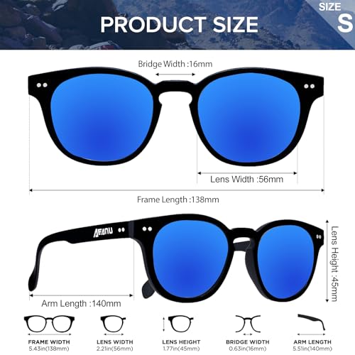 Polarized Sunglasses for Teens – UV400 Color Mirror Lens,Matte Round Frame Small Faces–Driving & Outdoors 5