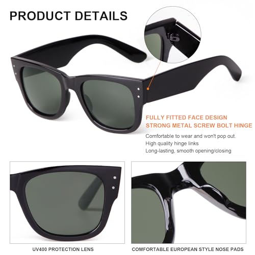 More information about Retro Sunglasses for Men Women, Wide Temples Mens Fashion Sunglasses Square Frame Shades for Men UV400 Glasses