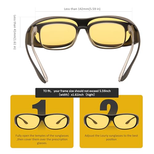 • [HD Polarised Night Vision Lenses] Louriy Polarized yellow tinted lens with special anti-reflective coating, effectively reduce glare caused by oncoming intense headlights and bright streetlights, enhance night clarity and alleviate eye fatigue, making night driving safer
