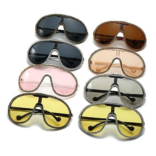 Oversized One Piece Sunglasses For Women Men Fashion Rhinestone Sun Glasses Large Frame Diamond Eyewear UV400 Shield Goggles 6