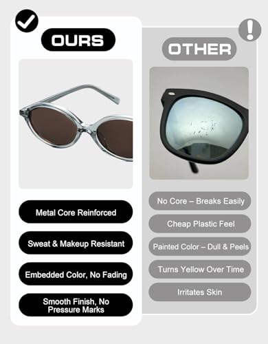 • 【Reinforced & Long-Lasting】 Premium stainless steel core and durable hinges mean these designer sunglasses womens resist bending and breaking. Integrated nose pads and reinforced screws keep them stable even after everyday wear.