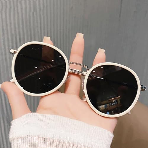 CHUANTEN Vintage Round Sunglasses Fashion Retro for Men Women Eyewear Uv400(Black Grey,one) 5