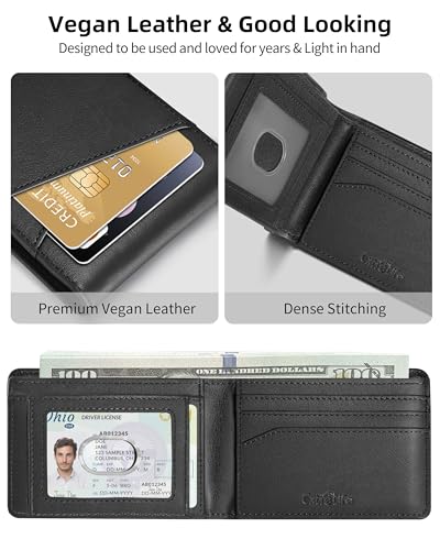 • High-Grade Material: This slim wallet for men is made of high quality durable vegan leather and upgraded fabric lining, sturdy, not easy to crack, and long-lasting.