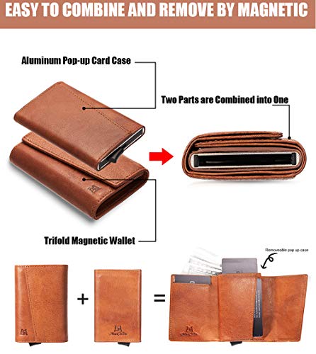 HOT ! ManChDa Genuine Leather Wallet Slim RFID Blocking Magnetic Wallet for Men Trifold Wallet Aluminum Detachable Wallet Pop up Card Wallet Card Case Holder Clip Money Organizer Khaki, MCD-MQB072US