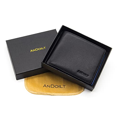 HOT ! ANDOILT Slim Wallet for Men Genuine Leather RFID Blocking Bifold Ultra Strong Stitching Stylish Wallets with ID Window Black&blue