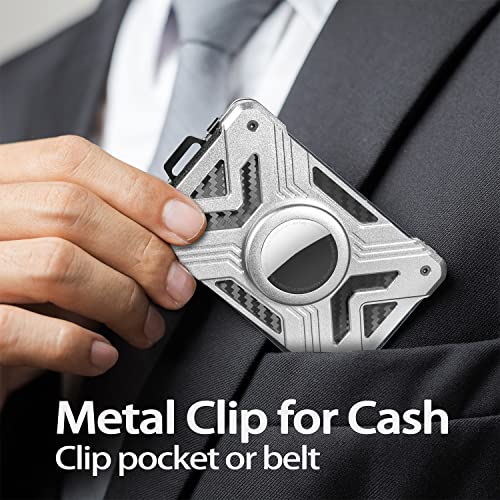 AirTag Wallet (No Airtag) with Metal Money Clip, Minimalist Wallet for Men with AirTag Holder, Carbon Fiber Money Clip, Slim Wallet for Men, RFID Blocking, Ultra-Thin Tactical Wallet Gift-Silver 2