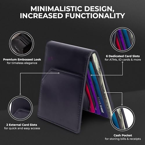 • Capacity without Bulk: Striking the perfect balance between form and function, our bi-fold men's slim wallet offers ample storage, holding up to 10 cards without unnecessary bulk. Pair it with your outfits and keep your cash and cards organized in style.