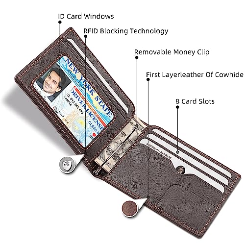 Wallet for Men Slim Minimalist Genuine Leather With Money Clip RFID Blocking Brown 5
