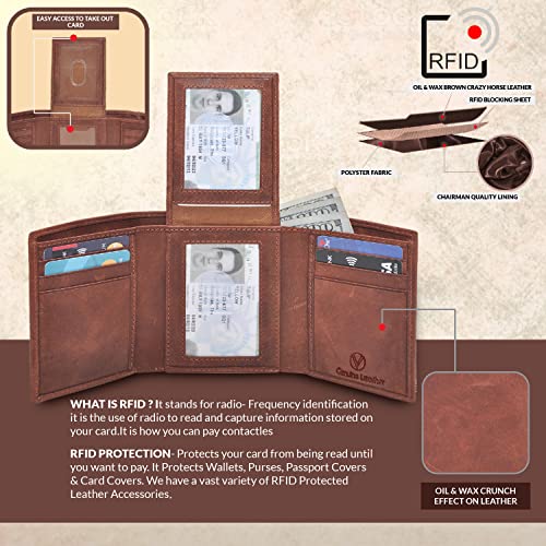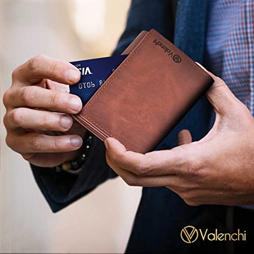 HOT ! VALENCHI Leather Trifold Wallet For Men - RFID Blocking - 9 Card Slots, 2 Note Compartments & 1 ID Window - Minimalist Design, Slim Wallet - Premium, Fashionable Accessory Gifts for Men, Him