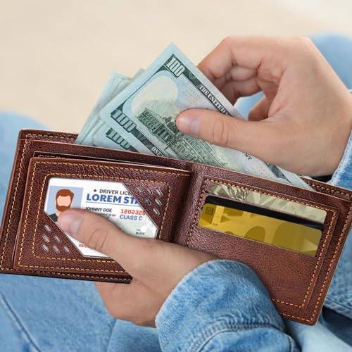 Slim Bifold Wallet, Soft Leather Multifunctional Men Wallet Fashion Foldable Bifold Wallet for Men with Flip ID Window Credit Card Holder (A, Brown) 6