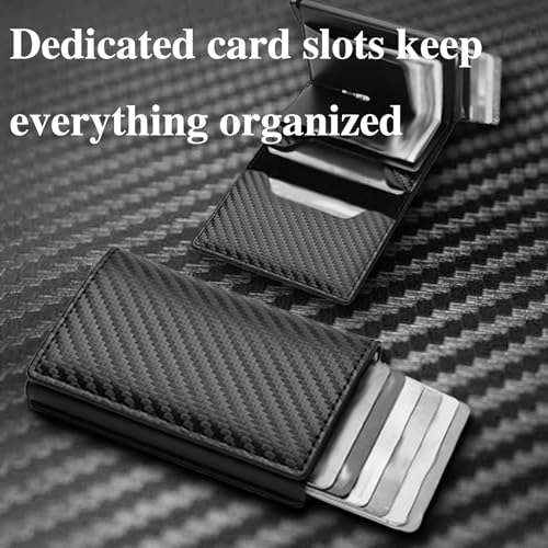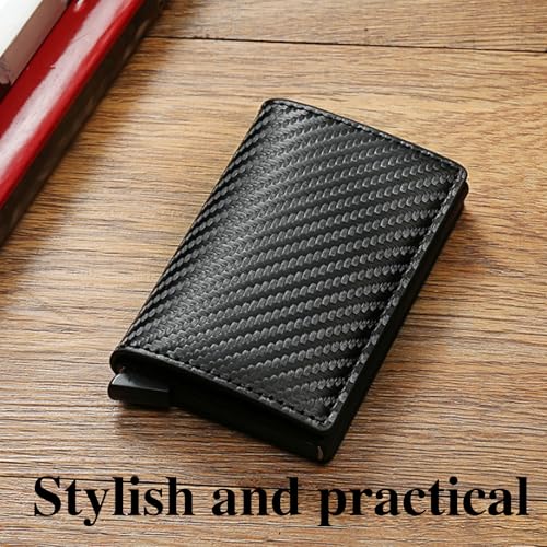 • Innovative Auto Pop-Up Design: This wallet features an automatic pop-up mechanism for easy access to your cards. Simply press a button, and the wallet conveniently presents your cards with just one motion