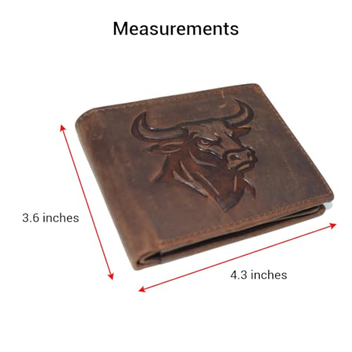 MARSHAL Genuine Leather RFID Bifold Wallet for Men Western Bull Design Rustic Cowboy Wallet (Brown) 6