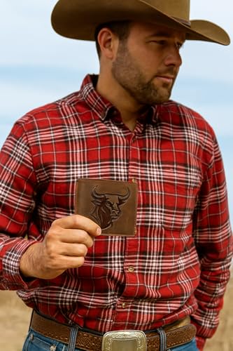 MARSHAL Genuine Leather RFID Bifold Wallet for Men Western Bull Design Rustic Cowboy Wallet (Brown) 1