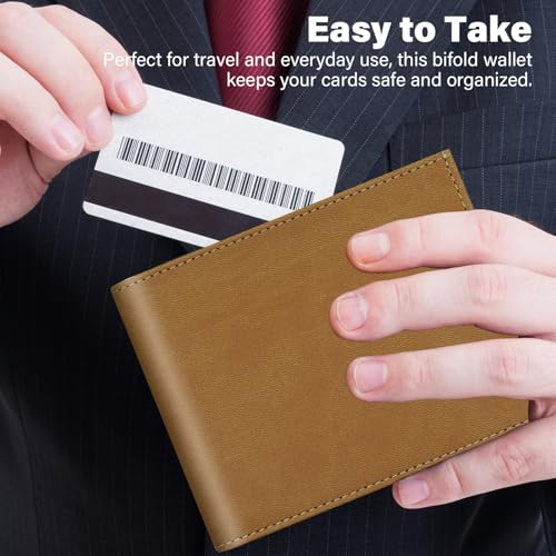 Bifold Leather Wallet for Men Women, RFID Minimalist Wallet with 12 Card Slots and Large Cash Compartment, Multifunctional Card Holder with Top Open, Thin & Stylish Photo Album -Apricot(PW) 6