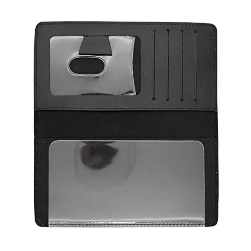 • KEY FEATURES – 4 slots available for credit cards, a clear window for picture ID, a built-in shield/divider for duplicate checks, a slot for a check register, a pen holder, and an additional pocket behind the card slots.