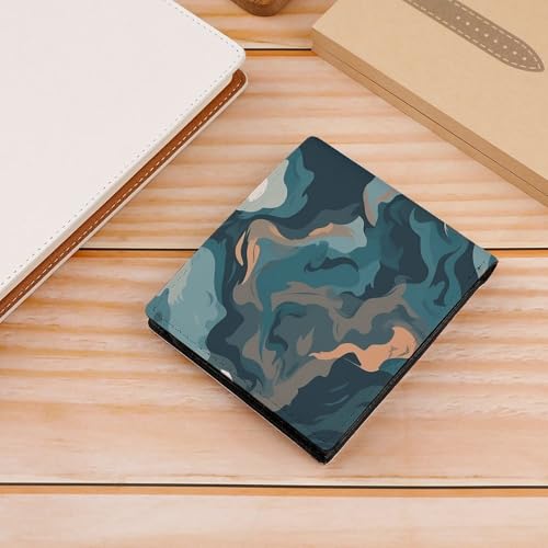 Blue Camouflage Pattern Bifold Wallet with ID Window, Leather Slim Wallet Easy Access Compact Purse for Men Women 6