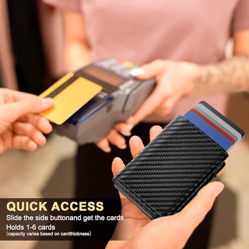 • 【Large Capacity】This minimalist wallet measures 3.8 * 2.5 * 0.8 inches, and it has the ability to hold between 10-15 cards, 20 bills, as well as an ID window for driver's licenses. The ultra-thin design ensures that the wallet fits perfectly in your pocket, making it ideal for everyday carry.